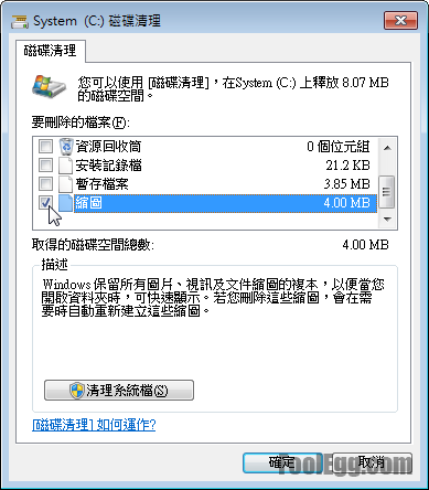 電腦教學 清理資料夾的縮圖 Windows 的資料夾可以看到資料夾內檔案的縮圖。在很多情況下,我們將資料夾內的檔案刪除,資料夾的縮圖仍然顯示舊的縮圖。這個教學就是清理資料夾的縮圖,讓資料夾可以重新建立縮圖。 清理資料夾的縮圖 按「開始」,選擇和打開「電腦」。在需要清理資料夾的縮圖的磁碟上點擊滑鼠右鍵,選舉「內容」。 選擇「磁碟清理」。 系統計算可以節省的空間,請稍等。 選擇「縮圖」,然後按下「確定」。 在確定提示中選舉「刪除檔案」。 資料夾縮圖已經清理完成。